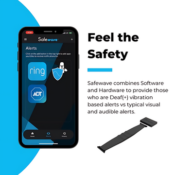 Safewave is the first portable vibration-based alert system designed specifically for the Deaf+ community. This innovative watch band integrates seamlessly with smart home devices like cameras, sensors, and door locks, ensuring that users stay informed about their home security system.